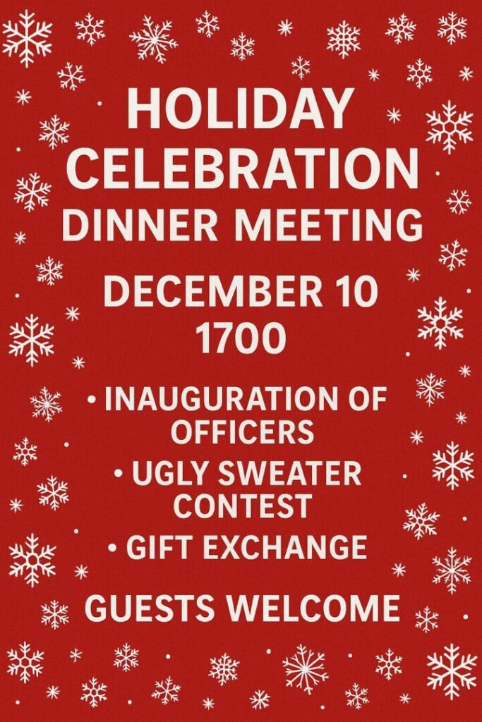 Join us for some holiday cheer at our Annual December Dinner Meeting! We’ll close out the year with great food, good company, and a few festive surprises.