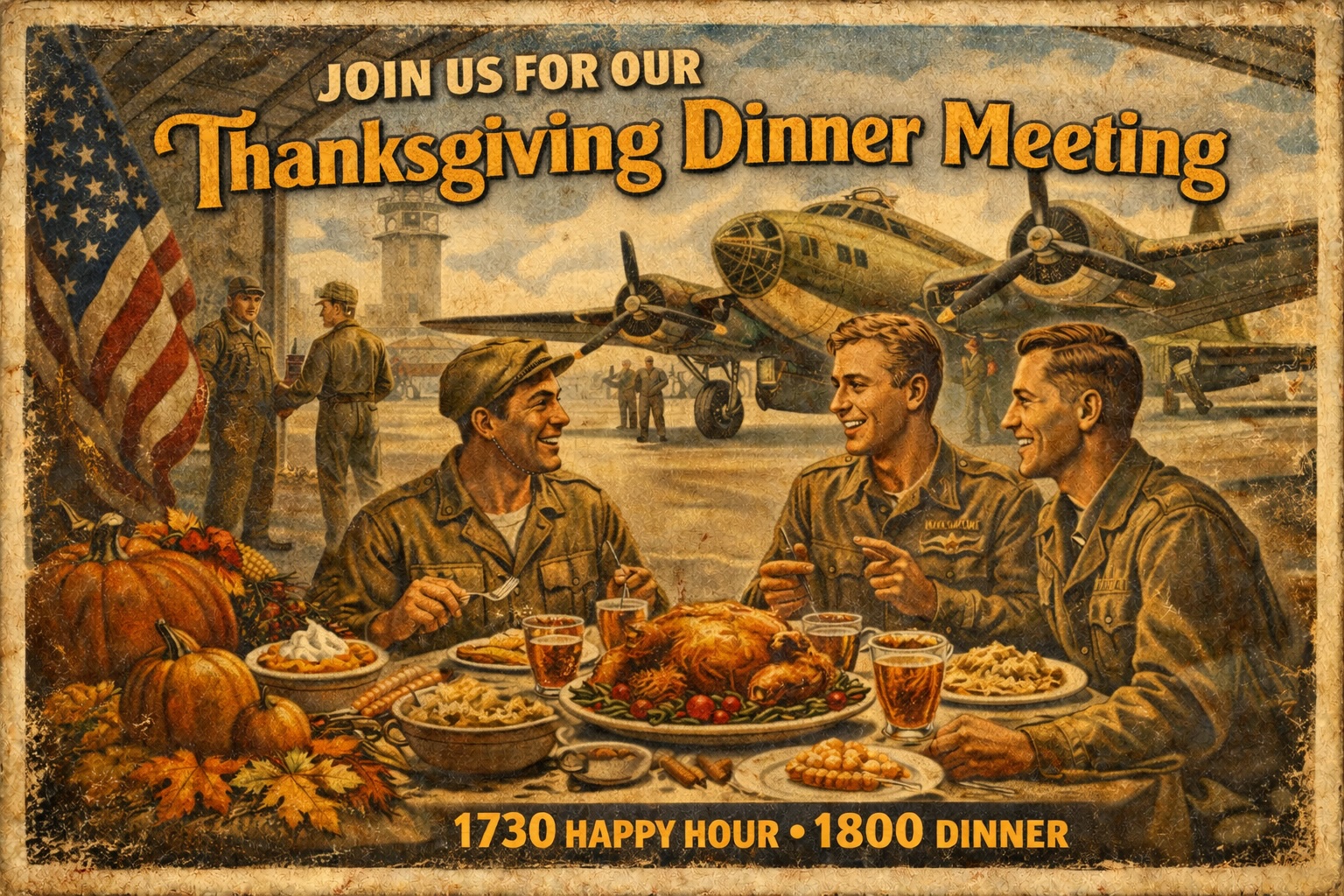 Join us for our Monthly Dinner Meeting, held on the second Wednesday of each month, for an evening of good food, aviation fellowship, and engaging programs at the hangar. The night begins with Happy Hour at 1730, followed by dinner and the meeting at 1800.