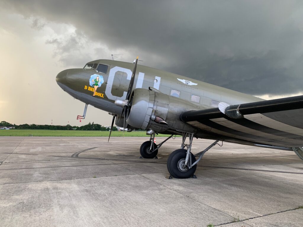 Let’s take a look at the Commemorative Air Force’s Douglas C-53, the “D-Day Doll”. This iconic aircraft is a Normandy veteran and now resides in Riverside, California. She was flown back to France to drop paratroopers for the 75th Anniversary of D-Day. A grateful thanks to the “D-Day Doll” crew: Steve Rose, Ben Clerx, and Mike Lindgren. They were very gracious with their time and did an excellent job sharing this amazing piece of world history with us!